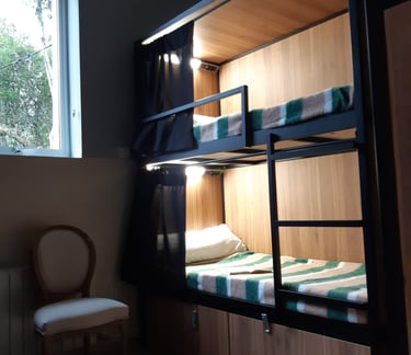 Dispone dos habitaciones que reparte 14 Camas en literas Privacy