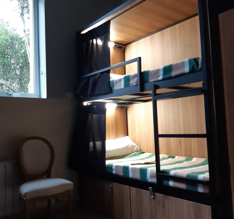 Islares Hostel dispone de dos habitaciones para 8 y 6 personas, dotadas de modernas literas que incorporan luz de lectura, usb y enchufe para tus dipositívos electrónicos, taquillas con ruedas en su parte inferior para que sea lo mas cómodo el poder tus pertenencias guardadas con llave, además de cortinas independientes para una mayor privacidad.